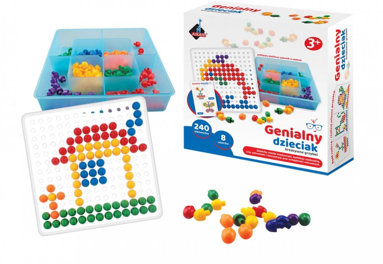Mozaika - układanka z kolorowymi pinezkami to zabawka rozwijająca kreatywność dzieci, kształtująca wyobraźnię, ucząca wytrwałości i koncentracji oraz umiejętności manualnych.