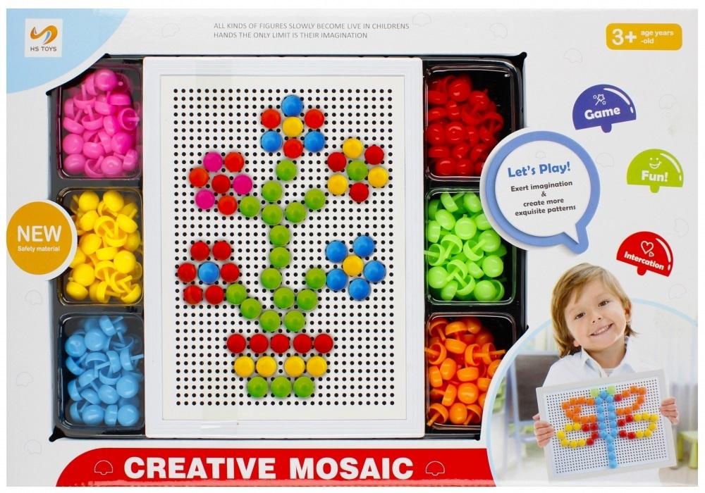 Zalety produktu: Plastikowa mozaika 180 elementów plus plansza do układania różnych wzorów pozwala pobudzić wyobraźnię i tworzyć twojemu dziecku bardziej wyszukane wzory, wszelkiego rodzaju postacie żyją w rękach dzieci, jedynym ograniczeniem jest ich wyobraźnia. Pozwól dziecku na kreatywność. Plastikowa mozaika pozwolili rozwinąć umiejętności oraz wyobraźnie każdego dziecka! gra zabawa interakcja. Zawartość zestawu: 180 szt mozaiki. Zestaw wykonany z plastiku. Wymiary/waga/baterie: wymiary produktu (dł. x wys. x gł.) [cm]: 29,5x23x3,5, wymiary opakowania (dł. x wys. x gł.) [cm]: 43,5x 30x4, waga produktu bez opakowania [kg]: 0,58 kg, waga produktu w opakowaniu [kg.]: 0,91 kg, nie wymaga zasilania bateriami. Zabawka dla dzieci w wieku 3+. Zestaw pakowany w kartonik z okienkiem.