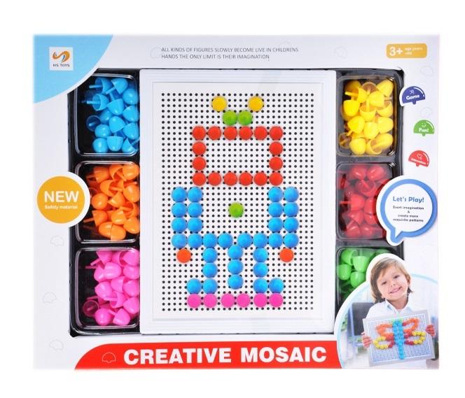 Zalety produktu: Plastikowa mozaika 180 elementów plus plansza do układania różnych wzorów pozwala pobudzić wyobraźnię i tworzyć twojemu dziecku bardziej wyszukane wzory, wszelkiego rodzaju postacie żyją w rękach dzieci, jedynym ograniczeniem jest ich wyobraźnia. Pozwól dziecku na kreatywność Plastikowa mozaika pozwolili rozwinąć umiejętności oraz wyobraźnie każdego dziecka! gra zabawa interakcja . Waga opakowania {kg.} 0,80kg. Wymiary opakowania (dł. x wys. x gł.){cm} 36x30x4 Waga produktu {kg.} 0,50kg Wymiary produktu (dł. x wys. x gł.){cm} 29,5x23x3,5 Zabawka dla dzieci w wieku 3+. Pakowana w kartonik z okienkiem.