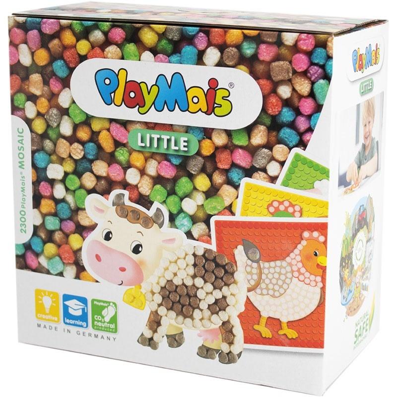 Nowa odmiana PlayMais Mozaika to zminiaturyzowana wersja Playmais, tak aby Kreatywny Maluch mógł wyklejać PlayMais na załączonych kolorowych kartach - w tym wypadku są to Farma. PlayMais Mozaika to doskonały materiał nie tylko na mozaikę, lecz do tworzenia trójwymiarowych mniejszych światów. Dlaczego mielibyście nie połączyć standardowy Playmais z PlayMais Mozaiką. Liczymy na waszą kreatywność. Zestaw Skierowany do dzieci od 3 lat. Kreatywny zestaw tematyczny umożliwiający ułożenie kolorowych mozajek zawiera: ponad 2300 PlayMais Mozaika, 6 motywów do wyklejania, gąbeczkę, instrukcje. Koniec z brudnymi dywanami i stołami! Wyprodukowany w Niemczech ze skrobi kukurydzianej i barwników spożywczych, PlayMais jest ekologicznym materiałem kreatywnym, który gwarantuje świetną i przede wszystkim bezpieczną zabawę. Nie zawiera żadnych substancji szkodliwych dla zdrowia. Nie istnieje też ryzyko zadławienia w wypadku przypadkowego połknięcia przez dziecko. PlayMais po prostu rozpuści się. Wystarczy jedynie wilgotna ściereczka aby go ze sobą łączyć. Można go dowolnie kształtować dłońmi, ciąć nożykiem plastikowym (w innych zestawach jest zawarty biodegradowalny nożyk z kukurydzy), czy nożyczkami dla uzyskania bardziej szczegółowych detali. Co charakteryzuje PlayMais: jest plastyczny jak plastelina, kolorowy jak tęcza, bezpieczny i lekki jak chrupek, można po nim pisać jak po papierze. Może służyć do: budowania dużych budowli (doskonała nośność), do dekorowania doniczek, obiektów zarówno plastikowych jak i szklanych, stworzenia płaskiej ""kartki"", aby z niej wyciąć dowolny motyw, uzyskania efektów które nie są dostępne dla innym mas plastycznych np. efekt ""pierza"". Produkt zdobył wiele nagród i wyróżnień, m. in. elitarną nagrodę Spiel gut i ToyTalk. PlayMais stymuluje wszechstronny rozwój dziecka m. in.: rozwój kreatywności i rozpoznawania kolorów, odkrywanie kształtów i form, rozwój zmysłu dotyku i prawidłowych umiejętności motorycznych, rozwój osobowości, rozwój umiejętności interpersonalnych w grupach, rozwój wyobraźni przestrzennej i zdolności myślenia bez ram czasowych, świetne rezultaty podczas zajęć terapeutycznych oraz wspaniała integracja całej rodziny poprzez zabawę.