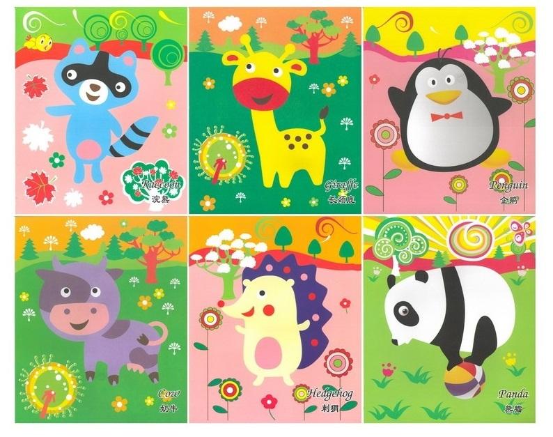 Kreatywny zestaw do stworzenia pięknego 3D obrazku, zestaw zawiera: szablon 17,5 x 21 cm, kolorowy papier, w opakowaniu 6 szt., różne motywy