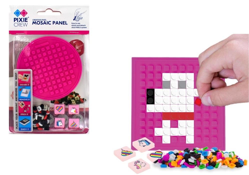 Mozaika Pixie Crew to wspaniały produkt dla dzieci w wieku 8 lat, który pozwala na tworzenie kreatywnych i wyjątkowych wzorów. Zestaw zawiera 65 pikseli, które można umieścić na specjalnym panele o wymiarach 8 x 8 cm, aby stworzyć dowolny obrazek. Mozaika ma na odwrocie taśmę klejącą, dzięki czemu można go przykleić na różne przedmioty.
