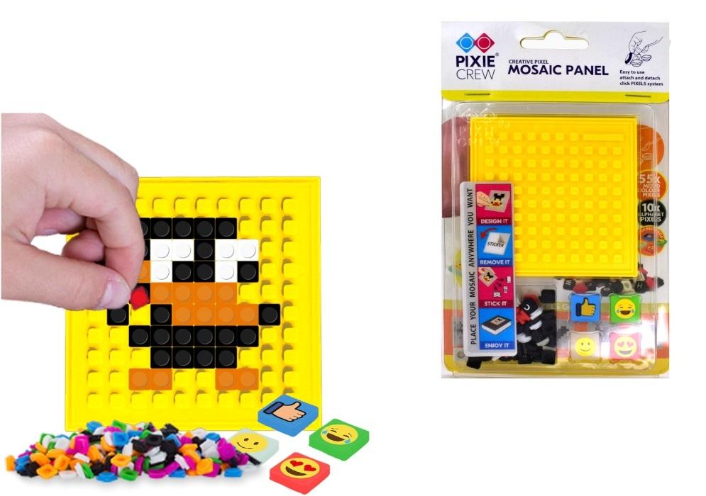 Mozaika Pixie Crew to wspaniały produkt dla dzieci w wieku 8 lat, który pozwala na tworzenie kreatywnych i wyjątkowych wzorów. Zestaw zawiera 65 pikseli, które można umieścić na specjalnym panele o wymiarach 8 x 8 cm, aby stworzyć dowolny obrazek. Mozaika ma na odwrocie taśmę klejącą, dzięki czemu można go przykleić na różne przedmioty.