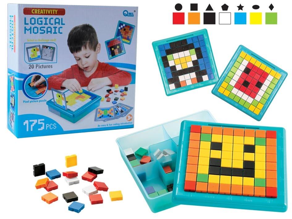 Propozycja dla dzieci w wieku przedszkolnym. Zestaw zawiera aż 175 elementów. Są to kwadraty przypominające piksele w 7 kolorach.