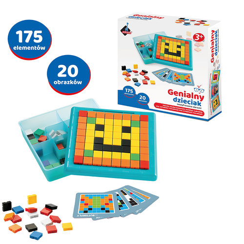Dzięki wczesnym zabawom w odwzorowywanie - nauka czytania i pisania będzie ?atwiejsza do opanowania i utrwalenia. Należy użyć kolorowych pikseli znajdujących się w zestawie, aby odszyfrować obrazek. Zestaw zawiera aż 175 elementów. Są to kwadraty przypominające piksele w 7 kolorach. Do zestawu dołączone jest 20 obrazków do odszyfrowania i odwzorowania. POLSKIE OPAKOWANIE!