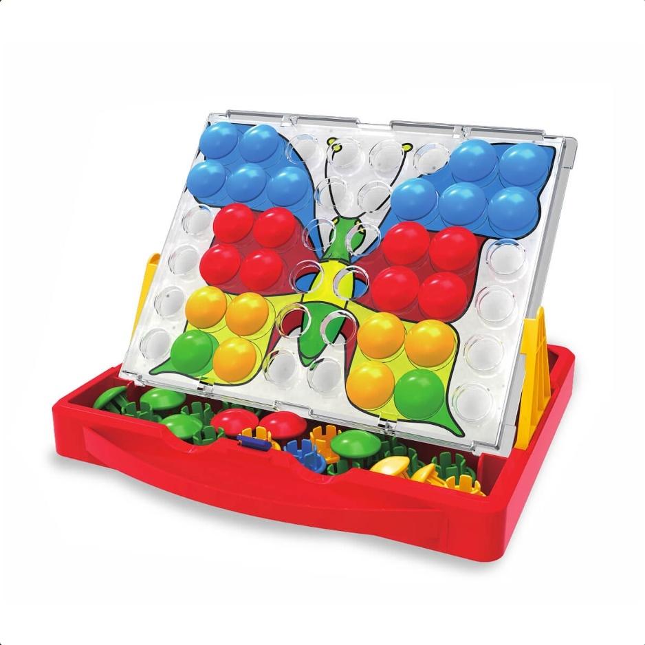 Zabawę zacznij od ściągnięcia przeźroczystej folii i wyciągnięcia kolorowych okrągłych wzorów. Wybierz kartę, zamieść ją na nakładce i zacznij zabawę umieszczając okrągłe elementy w odpowiednie miejsca.