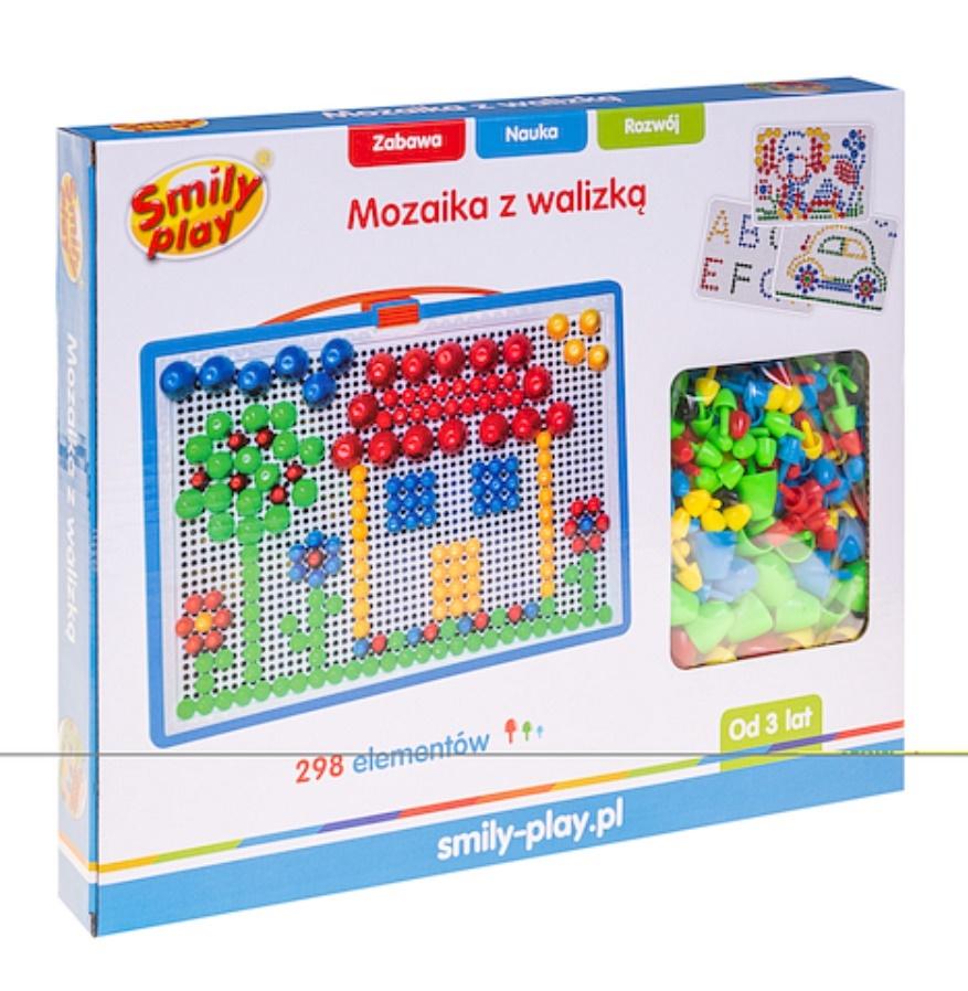 Zacznij kreatywną zabawę! Wyjmij plastikowy pojemnik i otwórz pokrywę. Wyjmij kolorowe elementy mozaiki i umieść w przegródkach. Wybierz jedną z 36 kart z obrazkami i zacznij zabawę umieszczając kwadratowe elementy w odpowiednie miejsca.