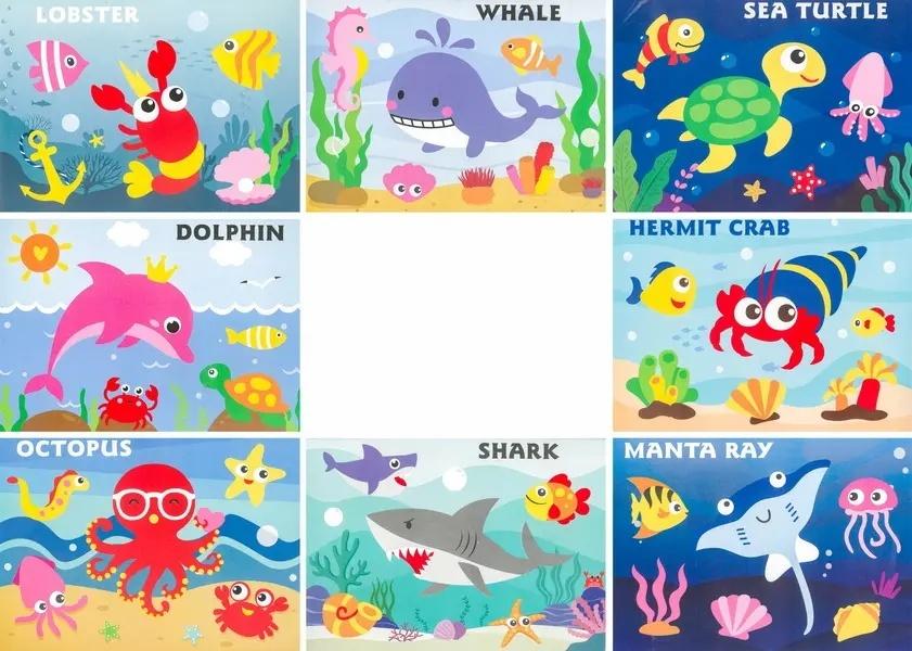 kreatywny zestaw pozwalający na stworzenie mozaiki, w zestawie naklejki piankowe, samoprzylepne oczka, podkładka, 8 szt. w opakowaniu, różne motywy