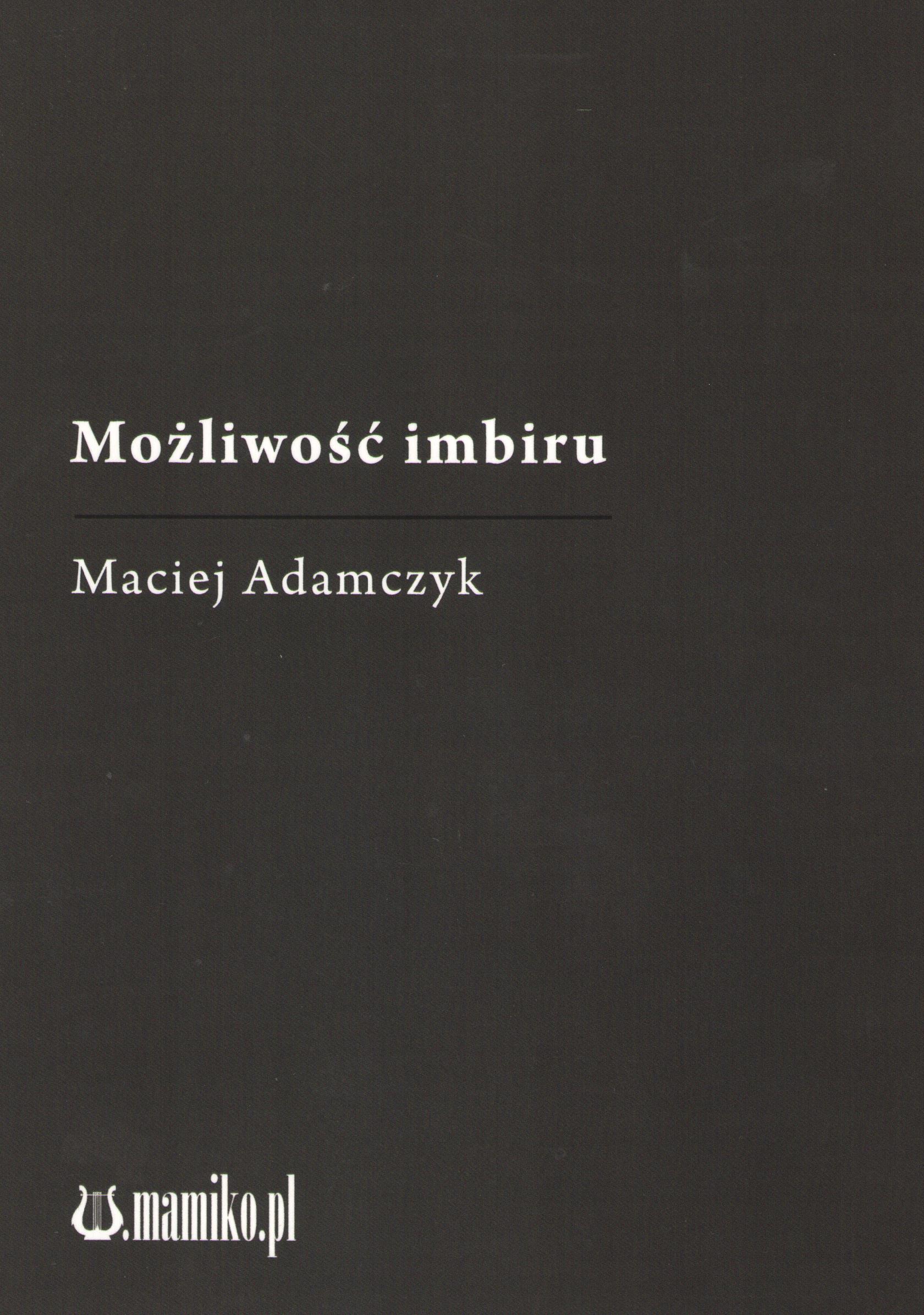 Niektórzy poeci to prawdziwi cyrkowcy. Z drobnych strużek atramentu naniesionych na papier potrafią wyczarować dziwaczne światy, które służą raczej do “czucia”, a nie profesorskich robinsonad. Maciej Adamczyk zawsze z nonszalancją żongluje wersami, odwiedzając miejsca i uczucia, o których nie wspomina się za często. Wstydliwe półsłówka, tamten przebłysk w brzoskwiniowym sadzie i odwracanie lęków brzuchem do góry. Z takich cięć wynika “Możliwość imbiru”, czyli książce, dzięki której można zajrzeć za kotarę własnego wesołego miasteczka. Maciej Adamczyk, poeta Pewnego razu jak świeżo po herbacie wpadła Tosia i nie zwlekając ani chwili dłużej z pięknymi oczami rzekła: Panie Macieju jest pan paskudnym i plugawym poetą takim trochę również pizdkiemi ogólnie bardzo nieprzyjemnym dla wszelkich ludzi brzydkim