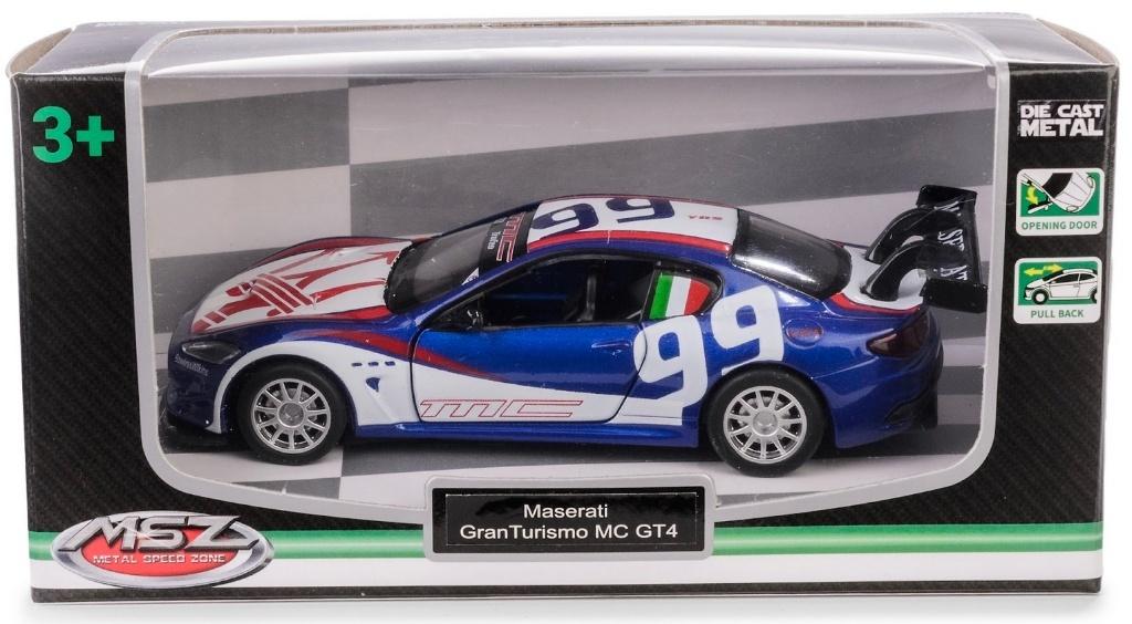 Model metalowy DIE CAST METAL- MSZ Maserati GranTurismo MC GT4 niebieski, skala 1:43. Posiada napęd pull-back oraz otwierane drzwi, przez które można zajrzeć do wnętrza samochodu. Metalowy pojazd z elementami plastikowymi wykonany z najwyższą starannością z materiałów wysokiej jakości. Miniaturowe spełnienie marzeń dzięki licencjonowanym modelom aut. Model spełni oczekiwania kolekcjonerów oraz dzieci podczas zabawy. Produkt zgodny z Europejską normą dotyczącą bezpieczeństwa zabawek. Kwalifikacja wiekowa: 3+ Wszystkie pojazdy posiadają oficjalną licencję producenta. Indeks: M-310 Skala: 1:43 EAN: 5905422133105