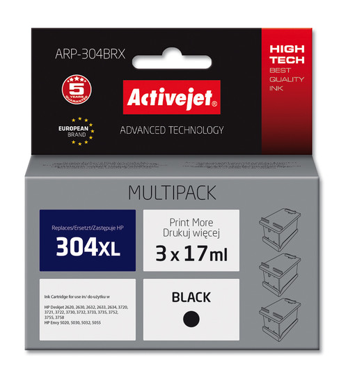 Opakowanie Multipack Activejet ARP-304BRX (zamiennik HP 304XL N9K08AE; Supreme; 3x17ml; czarny)