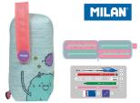 Multipiórnik MILAN z kolekcji MIMO w kolorze różowo - zielonym. W środku 4 piórniki saszetki z wyposażeniem przyczepiane na rzepy, które można używać osobno lub jako całość. Wyposażenie: 3 długopisy P1, ołówek sześciokątny HB, linijka trójkątna 15 cm, 12 flamastrów, 12 kredek trójkątnych, temperówka, gumka do ścierania. Wymiary: 22,5 x 11,5 x 11 cm. W multipiórnikach MILAN znajdziesz min.: • Kredki MILAN przy produkcji których użyto drewna pochodzącego wyłącznie z plantacji, gwarantujących nie używanie drewna z lasów deszczowych. Rysik kredki na całej długości jest przyklejony do drewna co zapobiega jego łamaniu. Dzięki trójkątnej budowie kredka jest ergonomiczna i wygodnie trzyma się dziecku. • Flamastry MILAN posiadają wytrzymałą i elastyczną stożkową końcówką, która nie wpada do środka nawet przy silnym nacisku. Po chwilowym odkształceniu końcówka zawsze wraca do pierwotnego kształtu. Tusz na bazie wody. Flamastry nie zawierają ftalanów, metali ciężkich i innych substancji toksycznych. Są bezpieczne dla dzieci. • Temperówkę z bezpiecznym przykręconym ostrzem dzięki czemu ostrze nie oddzieli się od obudowy temperówki • Gumkę z naturalnym kauczukiem. Materiał wierzchni: 100% poliester. Podszewka 150D poliester. Zestawy kreatywne "MILAN KITS" stworzone specjalnie dla dzieci i z myślą o nich. To seria produktów do rysowania i malowania, które mają rozwijać kreatywność. Łączą w sobie naukę z zabawą. Idealne do przedszkola, szkoły, ale także w domu, podróży, na wakacjach.