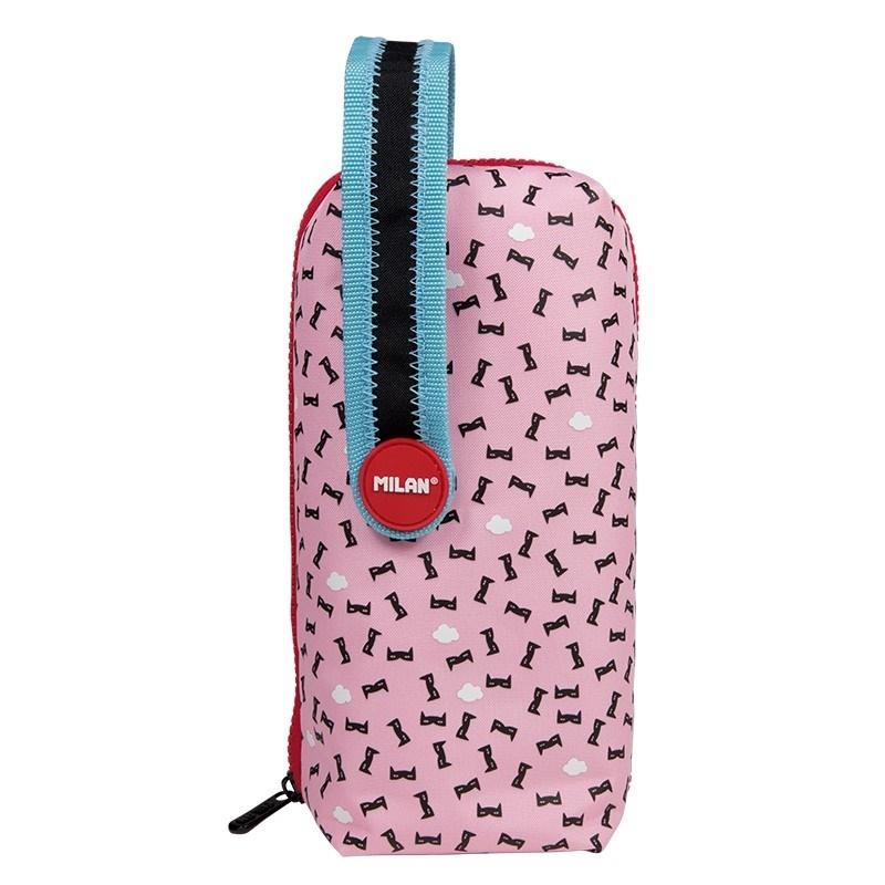 W środku 4 piórniki saszetki z wyposażeniem przyczepiane na rzepy, które można używać osobno lub jako całość. Wyposażenie: 3 długopisy P1, ołówek sześciokątny HB, linijka trójkątna 15 cm, 12 flamastrów, 12 kredek trójkątnych, temperówka, gumka do ścierania. Wymiary: 22,5 x 11,5 x 11 cm. W multipiórnikach MILAN znajdziesz min.: • Kredki MILAN przy produkcji których użyto drewna pochodzącego wyłącznie z plantacji, gwarantujących nie używanie drewna z lasów deszczowych. Rysik kredki na całej długości jest przyklejony do drewna co zapobiega jego łamaniu. Dzięki trójkątnej budowie kredka jest ergonomiczna i wygodnie trzyma się dziecku. • Flamastry MILAN posiadają wytrzymałą i elastyczną stożkową końcówką, która nie wpada do środka nawet przy silnym nacisku. Po chwilowym odkształceniu końcówka zawsze wraca do pierwotnego kształtu. Tusz na bazie wody. Flamastry nie zawierają ftalanów, metali ciężkich i innych substancji toksycznych. Są bezpieczne dla dzieci. • Temperówkę z bezpiecznym przykręconym ostrzem dzięki czemu ostrze nie oddzieli się od obudowy temperówki • Gumkę z naturalnym kauczukiem. Materiał wierzchni: 100% poliester. Podszewka 150D poliester. Zestawy kreatywne "MILAN KITS" stworzone specjalnie dla dzieci i z myślą o nich. To seria produktów do rysowania i malowania, które mają rozwijać kreatywność. Łączą w sobie naukę z zabawą. Idealne do przedszkola, szkoły, ale także w domu, podróży, na wakacjach.