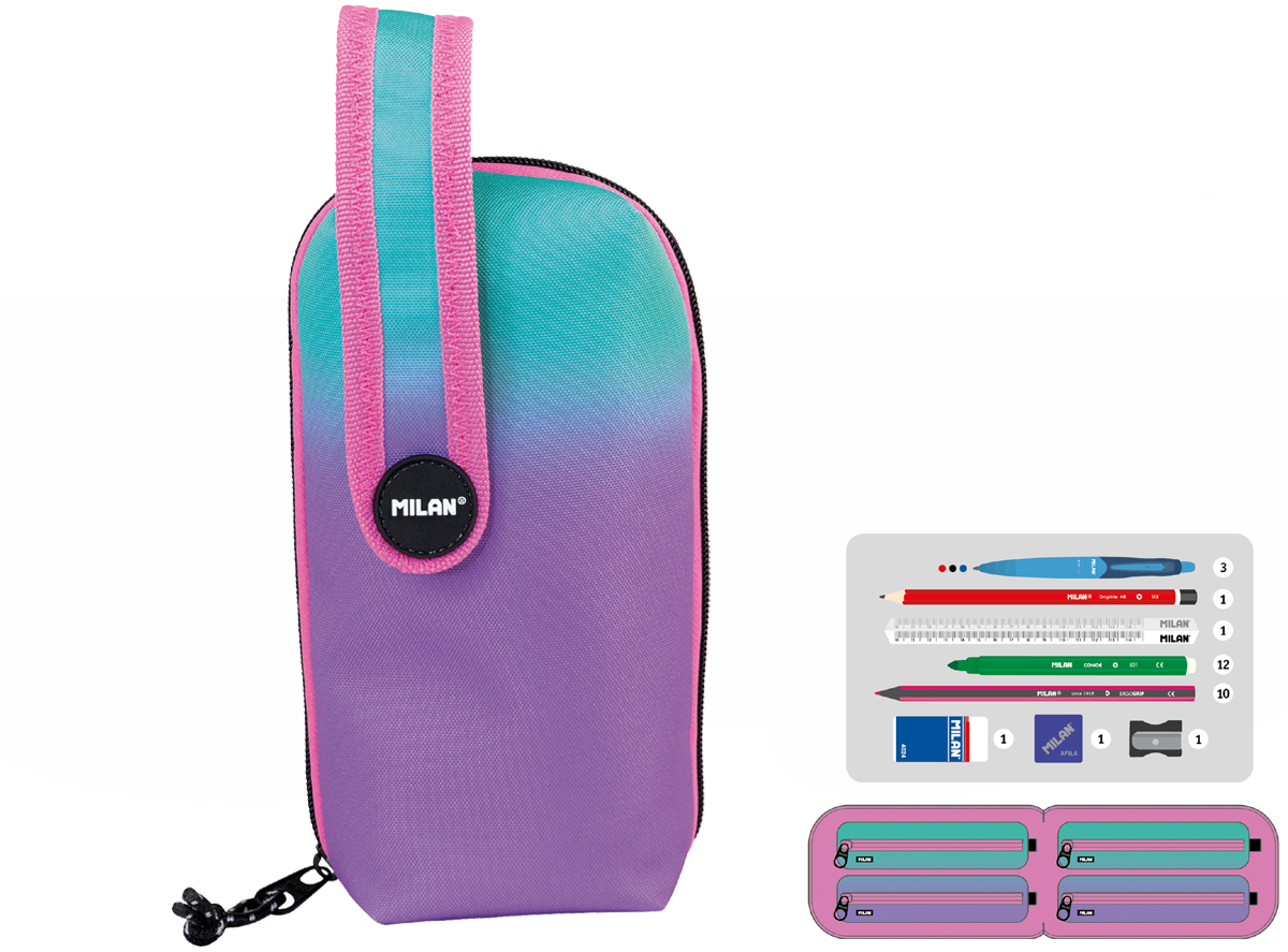Opakowanie Multipiórnik owalny z 4 piórnikami Milan Sunset fioletowo-zielony