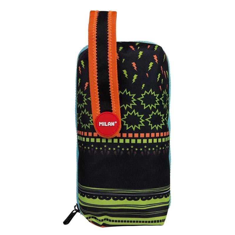 W środku 4 piórniki saszetki z wyposażeniem przyczepiane na rzepy, które można używać osobno lub jako całość. Wyposażenie: 3 długopisy P1, ołówek sześciokątny HB, linijka trójkątna 15 cm, 12 flamastrów, 12 kredek trójkątnych, temperówka, gumka do ścierania. Wymiary: 22,5 x 11,5 x 11 cm. W multipiórnikach MILAN znajdziesz min.: • Kredki MILAN przy produkcji których użyto drewna pochodzącego wyłącznie z plantacji, gwarantujących nie używanie drewna z lasów deszczowych. Rysik kredki na całej długości jest przyklejony do drewna co zapobiega jego łamaniu. Dzięki trójkątnej budowie kredka jest ergonomiczna i wygodnie trzyma się dziecku. • Flamastry MILAN posiadają wytrzymałą i elastyczną stożkową końcówką, która nie wpada do środka nawet przy silnym nacisku. Po chwilowym odkształceniu końcówka zawsze wraca do pierwotnego kształtu. Tusz na bazie wody. Flamastry nie zawierają ftalanów, metali ciężkich i innych substancji toksycznych. Są bezpieczne dla dzieci. • Temperówkę z bezpiecznym przykręconym ostrzem dzięki czemu ostrze nie oddzieli się od obudowy temperówki • Gumkę z naturalnym kauczukiem. Materiał wierzchni: 100% poliester. Podszewka 150D poliester. Zestawy kreatywne "MILAN KITS" stworzone specjalnie dla dzieci i z myślą o nich. To seria produktów do rysowania i malowania, które mają rozwijać kreatywność. Łączą w sobie naukę z zabawą. Idealne do przedszkola, szkoły, ale także w domu, podróży, na wakacjach.