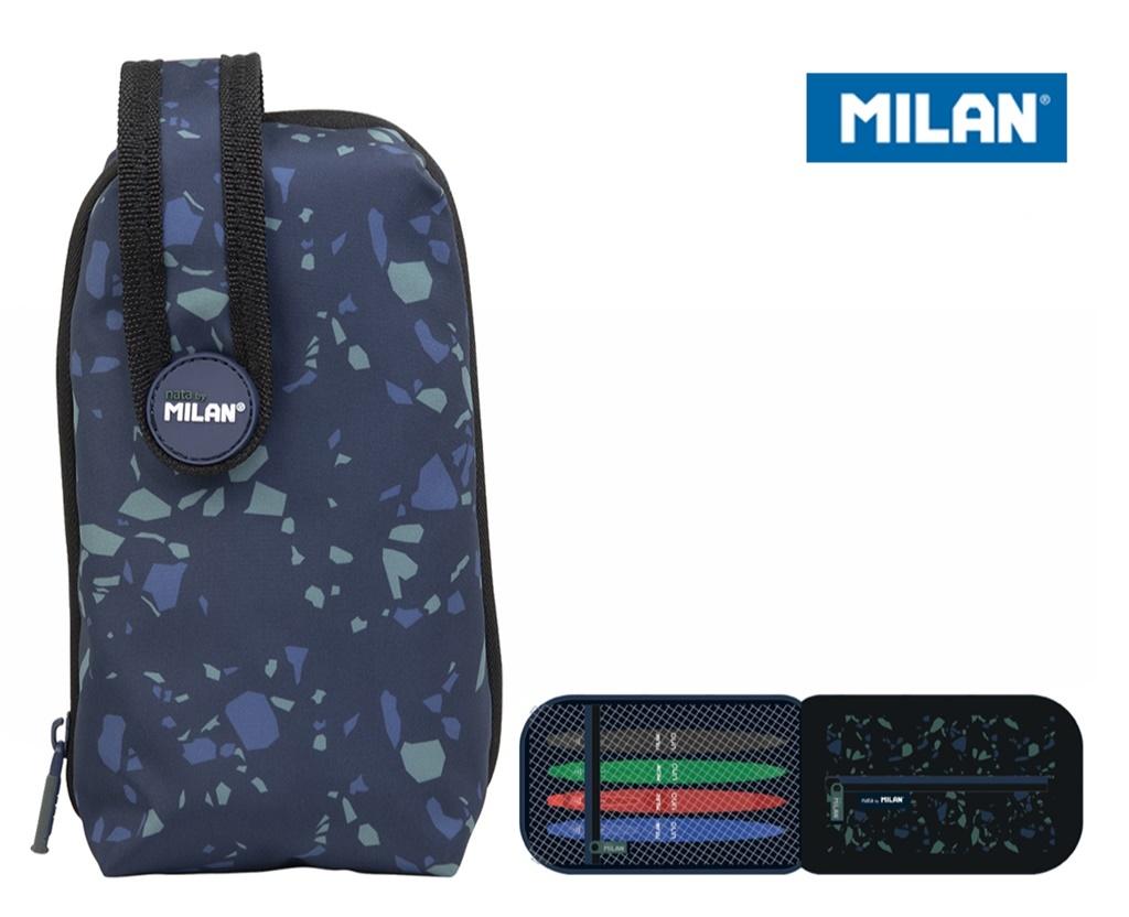 Multipiórnik MILAN owalny z kolekcji TERRAZZO BLUE granatowy. Nowość - 100% poliestr z recyklingu. W środku duży piórnik z saszetką z wyposażeniem, który można używać osobno lub jako całość. Dodatkowo kieszonka z siatki zapinana na suwak. Wyposażenie: 4 długopisy CAPSULE (niebieski, czarny, czerwony i zielony), ołówek mechaniczny CAPSULE SLIM z rys. 0,5 HB, linijka trójkątna 15 cm, zakreślacz CAPSULE żółty, gumka do ścierania. Wymiary: 19,4 x 10 x 8 cm. Materiał: zewnętrzny poliester z recyklingu (RPET) i poliestrowa podszewka. Zużyte butelki plastikowe są przetwarzane w przędzę poliestrową pochodzącą z recyklingu, aby stworzyć materiał na nasze plecaki i akcesoria.