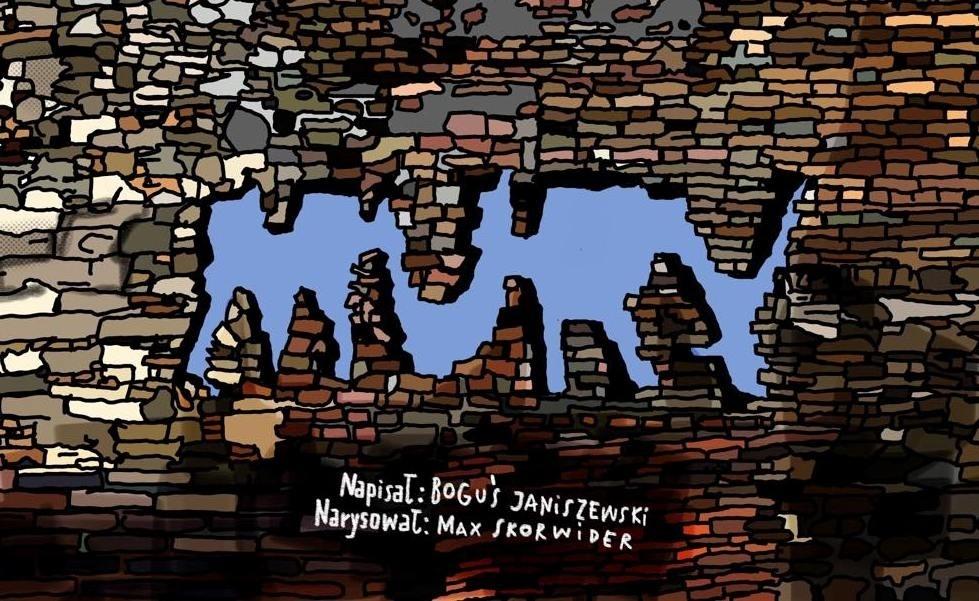 Pamiętajmy, że wszędzie tam, gdzie jest jakiś mur, ludzie próbują go zdobyć albo zza niego uciec. I to nie zmienia się od tysięcy lat. (Boguś Janiszewski „Mury”) Autorzy: Janiszewski i Skorwider specjalizujący się w popularyzowaniu ciekawych i złożonych zagadnień, znani z książek „ Ekonomia”, „Polityka” , „Mózg”, tym razem swój czas i energię poświęcili –murom. Zarówno tym fizycznym jak i metaforycznym. Książka o murach? Trzeba wielkiego talentu, żeby napisać i zilustrować ciekawą książkę dla dzieci, na temat, który wydaje się mało zajmujący dla młodego czytelnika. Boguś i Max prowadzą z czytelnikiem dialog i nieźle się przy tym bawią. Prosty tekst składający się z krótkich zdań, powtórzeń, tautologii sprawia wrażenie, że jego autor jest nieporadny językowo podobnie jak dziecko, które próbuje opowiedzieć coś bardzo ważnego za pomocą niedoskonałego, ubogiego w słowa języka. Ten zabieg zbliża autora i czytelnika i sprawia, że skomplikowane pojęcia i zdarzenia stają się zrozumiałe. Ta prosta, świadomie wykreowana przez autora forma, odzwierciedla dziecięcy świat i sposób myślenia. Autor nie poucza, nie staje ponad czytelnikiem, nie sprawdza, nie zadaje pytań ale razem z nim poszukuje odpowiedzi. Spośród wielu znanych i mniej znanych murów, które wybudował człowiek, autorzy wybrali kilkanaście. Każdy został opatrzony metryczką zawierająca informacje: kiedy powstał, jakie ma wymiary, z jakiego materiału i w jakim celu został zbudowany. Mamy nadzieję, że każdy czytelnik doceni również niebanalne opracowanie graficzne książki i jej edytorską staranność. Książka jest prawdziwym dziełem sztuki rysunkowej. Max Skorwider to jeden z najciekawszych grafików ilustrujących książki dla dzieci. Za pomocą charakterystycznej kreski, drapieżnej i nieco kanciastej, w sposób bezkompromisowy opowiada o ludzkiej cywilizacji tworząc spójną z tekstem , a jednak odrębną opowieść graficzną. Na każdej stronie pomijając ciekawe informacje wynikające z treści książki znajdziemy zilustrowany mur, który jednocześnie jest swoistą łamigłówką dla dociekliwych. Postaci z pierwszych stron gazet, politycy, pisarze, muzycy, współistnieją z bohaterami znanymi z literatury pięknej, kultowych filmów i komiksów. Czytelnika bez względu na wiek ucieszy każdy dobrze odczytany szczegół. Dziecko zobaczy potwora z Loch Ness, Batmana lub innego super bohatera z komiksów Marvela, dorosły fragmenty murali Banksyego lub w najmniej oczekiwanym miejscu postać z powieści Orwella. Książka „Mury” porusza bardzo ważny społeczny problem i choć wydawać by się mogło, że w dobie globalizacji i powszechnego dostępu do najnowocześniejszych technologii umożliwiających pokonywanie w krótkim czasie wielkich dystansów oraz przekazywanie idei, myśli i wartości na odległość, instytucja muru granicznego jest archaiczna., to trudno nie zauważyć, że mury wciąż powstają. Jak napisał Boguś Janiszewski w swojej książce: W zasadzie dzisiaj mury są nadal popularne. Tylko… Kiedyś za murami chowali się słabsi przed silniejszymi, a dzisiaj – bogatsi przed biedniejszymi. Chcielibyśmy aby lektura tej książki pomogła czytelnikowi odpowiedzieć na pytanie: czy chce on budować mosty, czy stawiać mury?