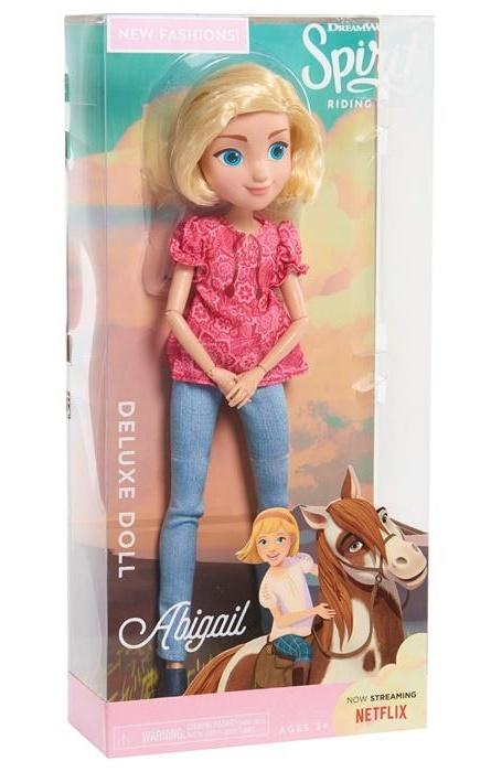 Jeżeli twoja pociacha uwielbia bawić się lalkami to z pewnością ucieszy się gdy do jej kolekcji dołączy jedna z niesamowitych bohaterek serialu Mustang: Duch wolności produkcji Netflix DreamWorks Animation. Seria składa się z trzech laleczek Lucky, Abigail oraz Prudence. Każda z postaci ubrana jest w doskonale znany z serialu - modny strój, który dodaje jej niepowtarzalnego uroku.