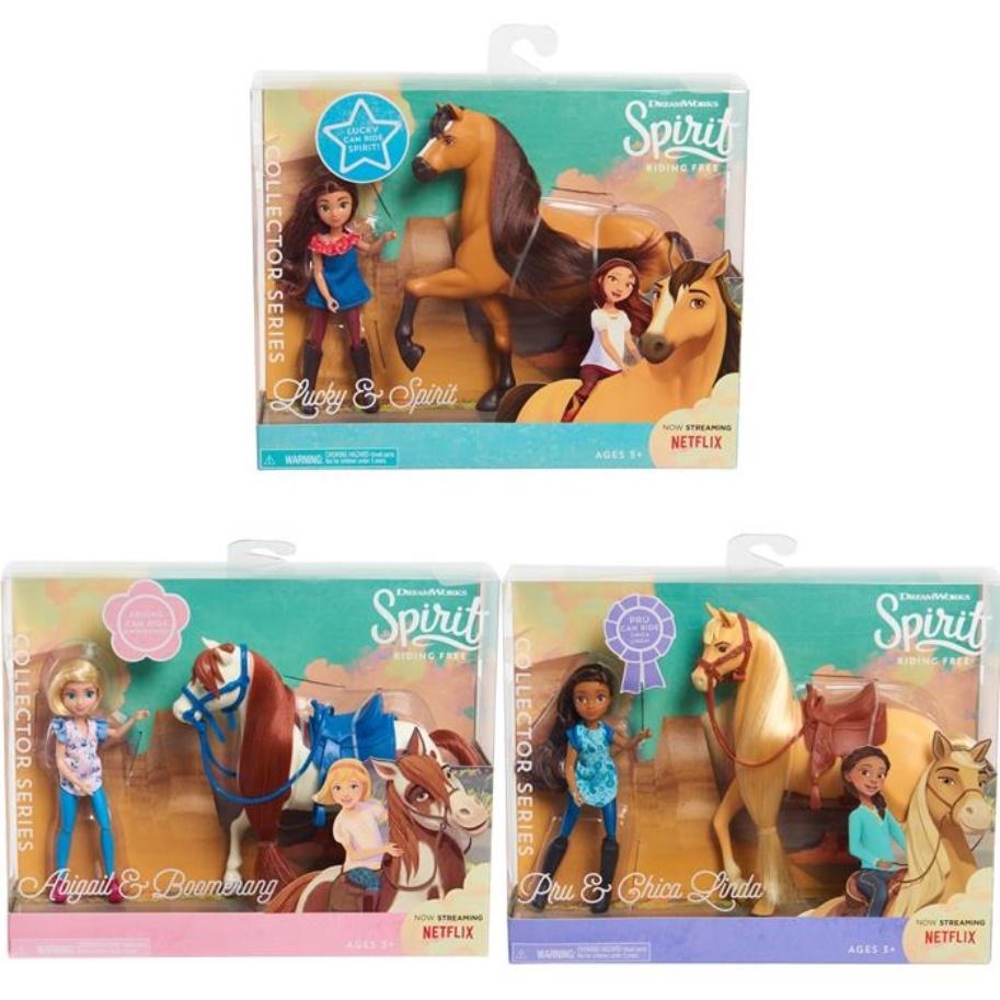 Zestaw składający się z niewielkiej laleczki oraz jej zwierzęcego przyjaciela rumaka wywoła uśmiech na twarzy dziecka. Zabawka ucieszy każdego, młodego miłośnika koni oraz wielbiciela animowanego serialu Mustang: Duch wolności wyprodukowanego przez Netflix DreamWorks Animation. Bajka opowiada o przygodach trzech dziewczyn - Lucky, Abigail oraz Prudence, które każdego dnia przeżywają niesamowite przygody.