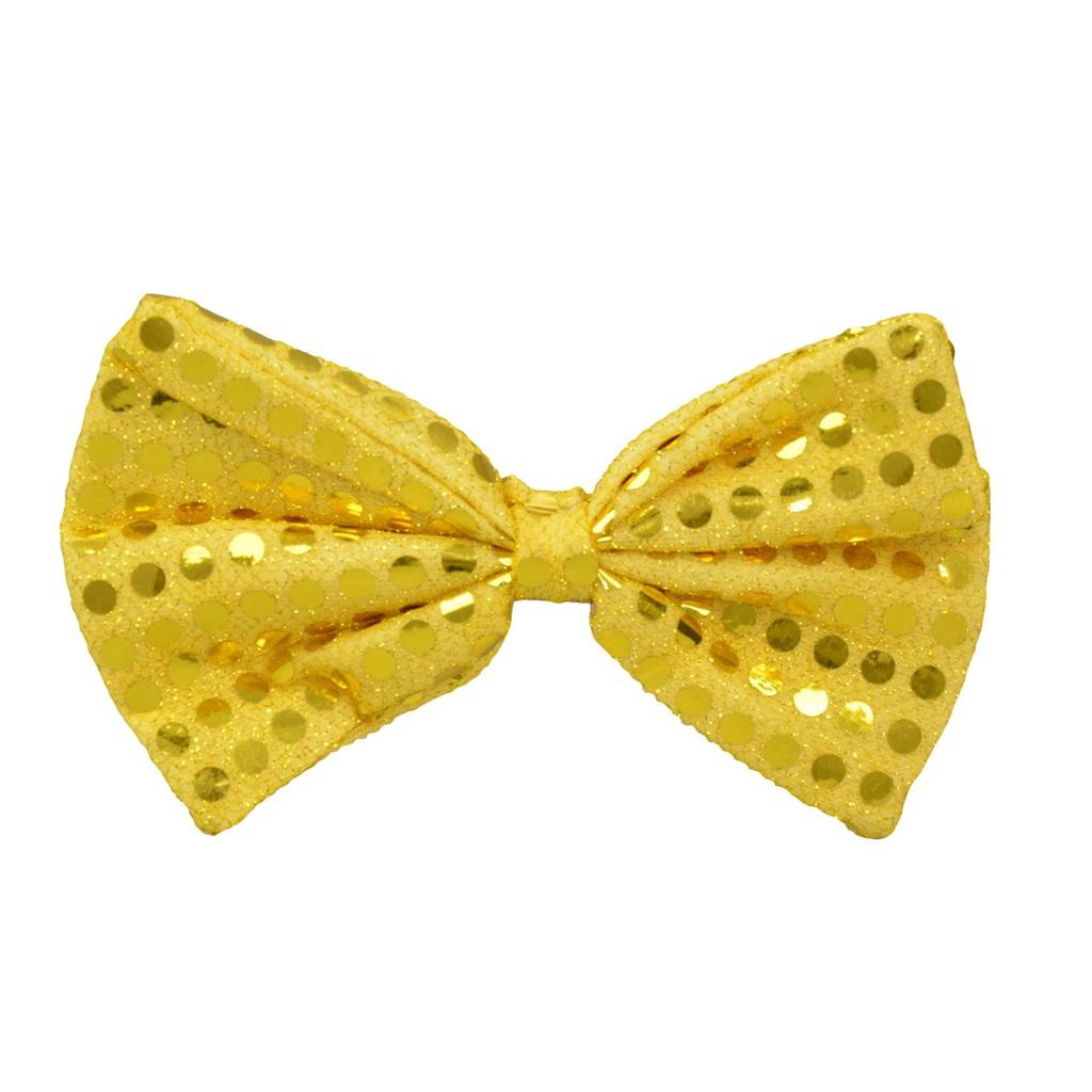 Błyszcząca muszka w kolorze złotym. Mucha zdobiona jest połyskującymi kropeczkami. Mocowanie za pomocą elastycznej gumeczki zapewnia wygodne noszenie oraz zakładanie. Zabawny element stylizacji na zabawę karnawałową, imprezę tematyczną, przyjęcie w stylu disco. Muszka o wymiarze 14x9 cm.