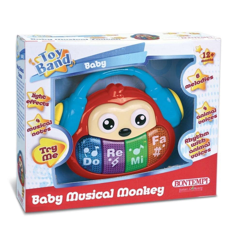 Muzyczna małpka. Zabawka posiada 6 wgranych melodii oraz 4 nuty muzyczne, a także 4 zwierzęce dźwięki. Istnieje możliwość zabawy połączonej z efektami świetlnymi, która polega na naciskaniu klawiszy, które się zaświecą. Małpka automatycznie się wyłącza, gdy nie jest używana. Zabawka zasilana 2 bateriami AAA, które nie są dołączone do zestawu. Dla dzieci w wieku od 12 miesięcy