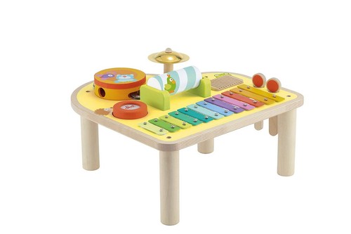 Drewniany stół muzyczny w kształcie fortepianu Ksylofon, tamburyn i cymbałki Wiek: 2+