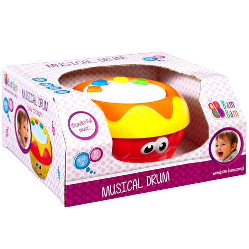 Muzyczne, interaktywne zabawka MUZYCZNY BĘBENEK przeznaczona od 18 m-ca doskonale edukuje malucha w zakresie rozpoznawania różnorodnych dźwięków, melodii. Naciskanie odpowiednich klawiszy pozwala na zmianę dźwięków . Kolorowe przyciski dodatkowo uatrakcyjniają zabawę. Zabawkia stymuluje rozwój zmysłu słuchu, wzroku oraz rozwijają zdolności manualne.