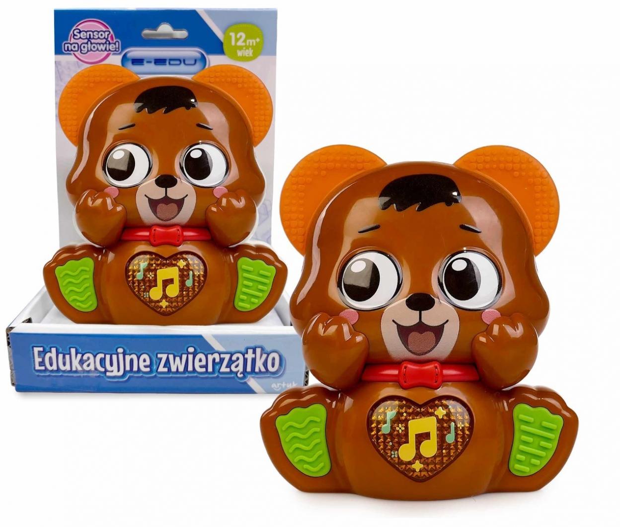 wym. Zabawki 14 x 12 x 6 cm, funkcje: naciśnięcie przycisku na brzuszku aktywuje 8 melodii, sensor na głowie - po dotknięciu czoła zwierzaka wydaje zabawne dźwięki i odgłosy, podświetlany przycisk na brzuszku, miękkie uszy i poduszeczki na łapkach, wym. opak. 12,5 x 18,5 x 7 cm, baterie: 2 x AAA 1.5V niedołączone, 12m+