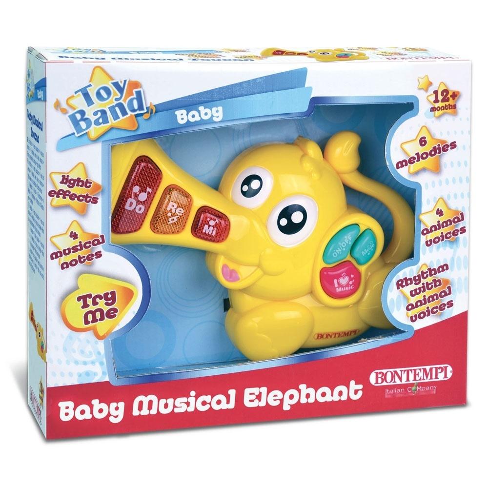 Muzyczny słonik.Zabawka posiada 6 wgranych melodii oraz 3 nuty muzyczne, a także 3 rytmy połączone ze zwierzęcymi dźwiękami. Istnieje możliwość zabawy połączonej z efektami świetlnymi, która polega na naciskaniu klawiszy, które się zaświecą. Słonik automatycznie się wyłącza, gdy nie jest używana. Zabawka zasilana 2 bateriami AAA, które nie są dołączone do zestawu. Dla dzieci w wieku od 12 miesięcy