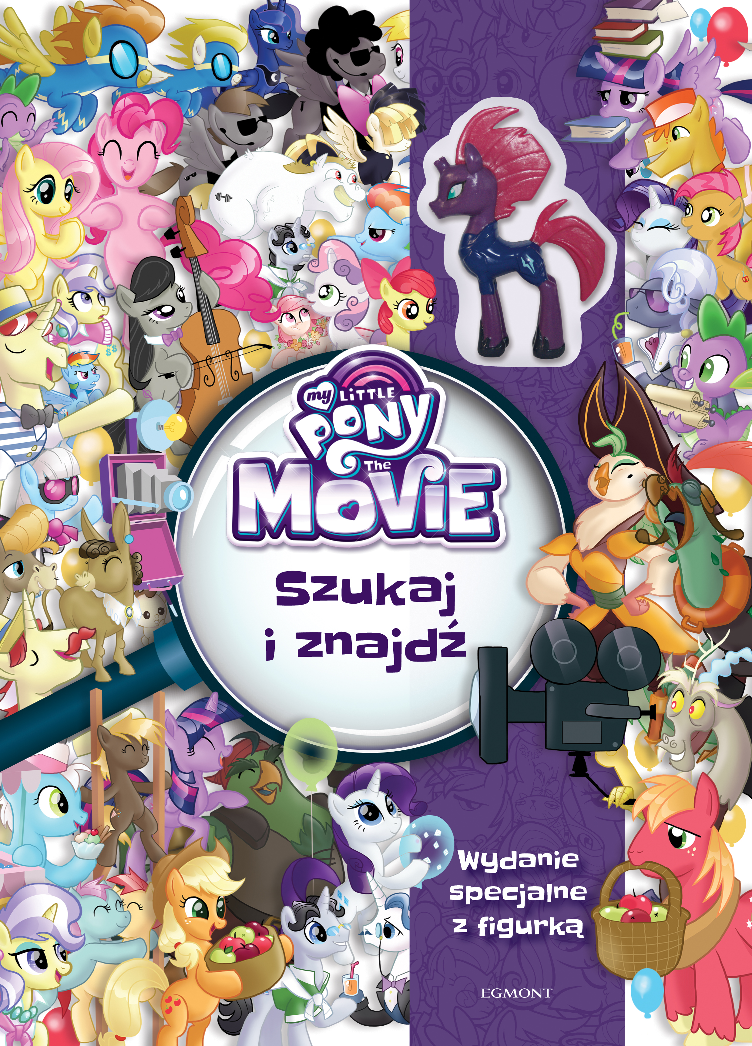 Poznaj najnowsze przygody kucyków prosto z wielkiego ekranu i zabaw się w detektywa! Przeczytaj tę opowieść i wyrusz w pełną przygód podróż wraz ze swoimi ulubionymi bohaterami, by odnaleźć ukryte postacie i przedmioty. Czy uda ci się wytropić je wszystkie? Twilight Sparkle, Rainbow Dash, Pinkie Pie, Fluttershy, Rarity, Applejack i Spike opuszczają Equestrię, by odszukać potężnego Storm Kinga, który pragnie posiąść całą magię. Droga do celu niestety okazuje się wyjątkowo trudna i pełna przeszkód. Czy mimo tego kucyki i Spike uratują Equestrię przed mroczną siłą? Baw się także fantastyczną figurką komandor Tempest Shadow – jednej z wielu nowych bohaterów filmu „My Little Pony The Movie”!