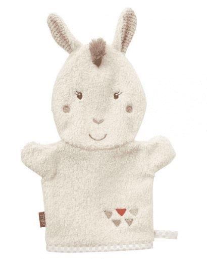 Miłośnicy pluskania w wodzie szybko docenią walory rękawicy w kształcie uroczej Lamy, pochodzącej z Machu Picchu z peruwiańskich Andów, spełniającej rolę praktycznej myjki. Wystarczy założyć ją na rękę, by przywrócić jej życie, wywołać chęć zabawy i jednocześnie umyć nasze maleństwo szybko, dokładnie i sprawnie. Najwyższej jakości materiał frotte jest delikatny i przyjemny dla skóry dziecka. Dzięki niemu codzienna rutyna może stać się czystą przyjemnością!