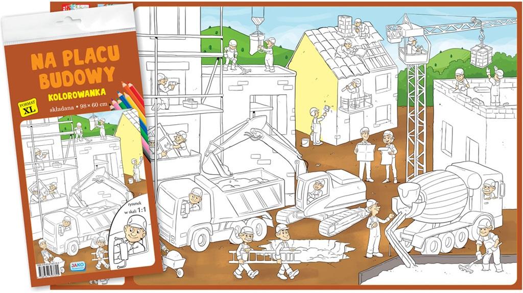 Ze składaną kolorowanką "Na placu budowy" dzieci mogą przenieść się w sam środek budowy i obserwować pracę fachowców. Kredki w dłoń! Ogromny, ilustrowany arkusz o wymiarach 98 x 60 cm jest do dyspozycji małego artysty. Kolorowanie zapewnia doskonałą rozrywkę, a przy tym rozwija zdolności manualne, staranność oraz koordynację wzrokowo-ruchową. To znakomite przygotowanie do szkoły, a także możliwość wyciszenia.