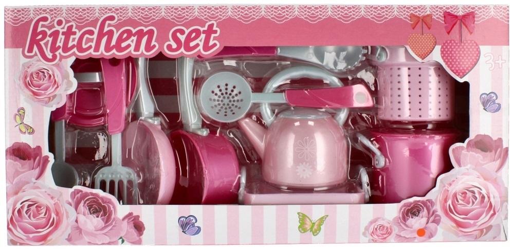 Zalety produktu: dziecko może nauczyć się podstawowych czynności domowych jakim jest np. gotowanie, zestaw z kolorowymi naczyniami kuchennymi z grafiką w kwiaty. Naczynia kuchenne MEGA CREATIVE doskonale sprawdzą się podczas zabawy w domu w gotowanie. Kuchnie dla dzieci z takim wyposażeniem mogą sprawić, że zabawa w gotowanie może stać się pasją dziecka! Zawartość zestawu: garnek, garnek do gotowania na parze, czajnik, tacka, rondelek, patelnia, pokrywka, 4 rodzaje sztućców kuchennych. Całość wykonana z plastiku. Wymiary/waga/baterie: wymiary produktu (dł. x wys. x gł.) [cm]: garnek-8x8x8, tacka-12x4x8, wymiary opakowania (dł. x wys.x gł.) [cm]: 46x22x10, waga produktu bez opakowania [kg]: 0,70 kg, waga produktu w opakowaniu [kg]: 1,12 kg, nie wymaga zasilania bateriami. Zabawka przeznaczona dla dzieci w wieku: 3+. Pakowana w kartonik z okienkiem.