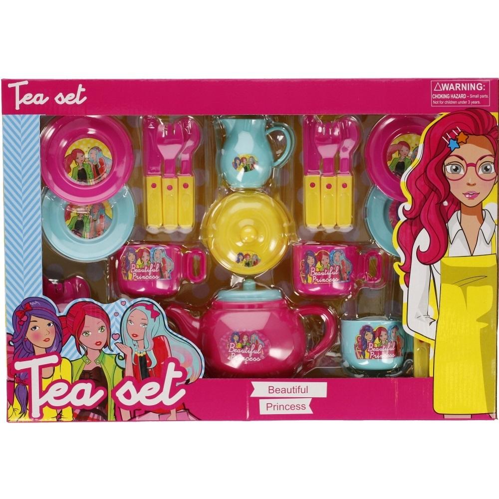 Zalety produktu rozwija kreatywność dziecka, pozwoli wcielić się dziecku w dorosłe życie i wykonywać podstawowe czynności domowe jak np. przygotowywanie kawy, herbaty, kolorowy zestaw z modną grafiką. Zestaw kuchenny do herbaty MEGA CREATIVE doskonale sprawdzi się podczas zabawy w przygotowanie pysznej herbatki. Tak bogate wyposażenie pięknych filiżanek i dzbanuszka może sprawić, że zabawa przerodzi się w prawdziwe przyjemne spotkanie przy herbatce Zawartość zestawu dzbanuszek, cukierniczka, dzbanek na mleko, 4 x filiżanki, 4 x talerzyki, 4 x łyżeczki, 4 x widelce, 4 x nożyki. Całość wykonana z plastiku. Wymiary/waga/baterie wymiary produktu dł. x wys. x gł. cm dzbanek-16x10x7, cukierniczka-8x8x8, dzbanek na mleko-7x7x5, wymiary opakowania dł. x wys. x gł. cm 47x32x8, waga produktu bez opakowania kg 0,28 kg, waga produktu w opakowaniu kg 0,52 kg, nie wymaga zasilania bateriami. Zabawka przeznaczona dla dzieci w wieku 3 . Zestaw pakowany w kartonik z okienkiem. W kartonie zbiorczym po 9 szt.