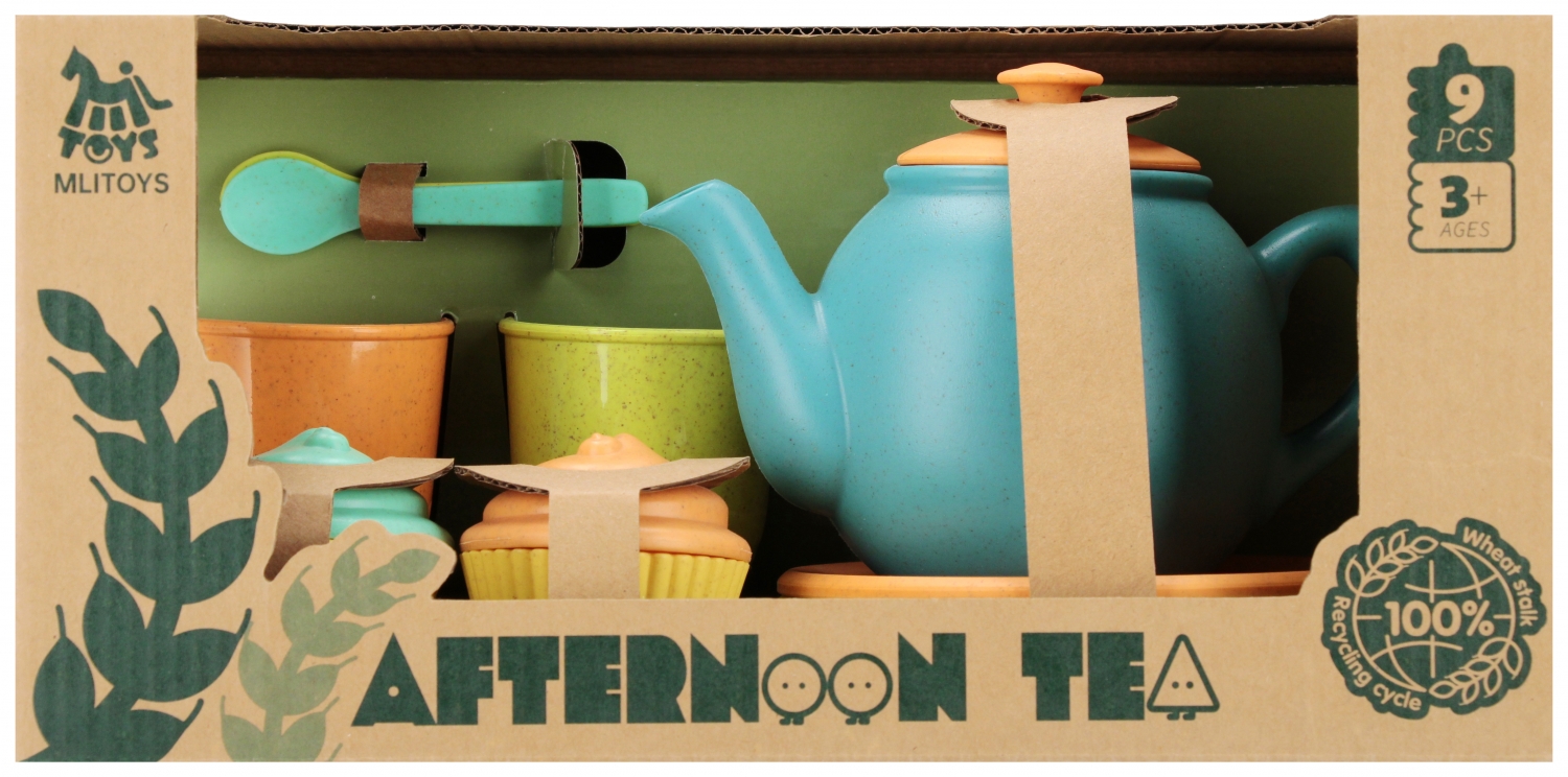 Zawartość zestawu dzbanek na herbatę/kawę, 2x talerzyk, 2x kubek, 2x muffinek, 2x łyżeczka mała.