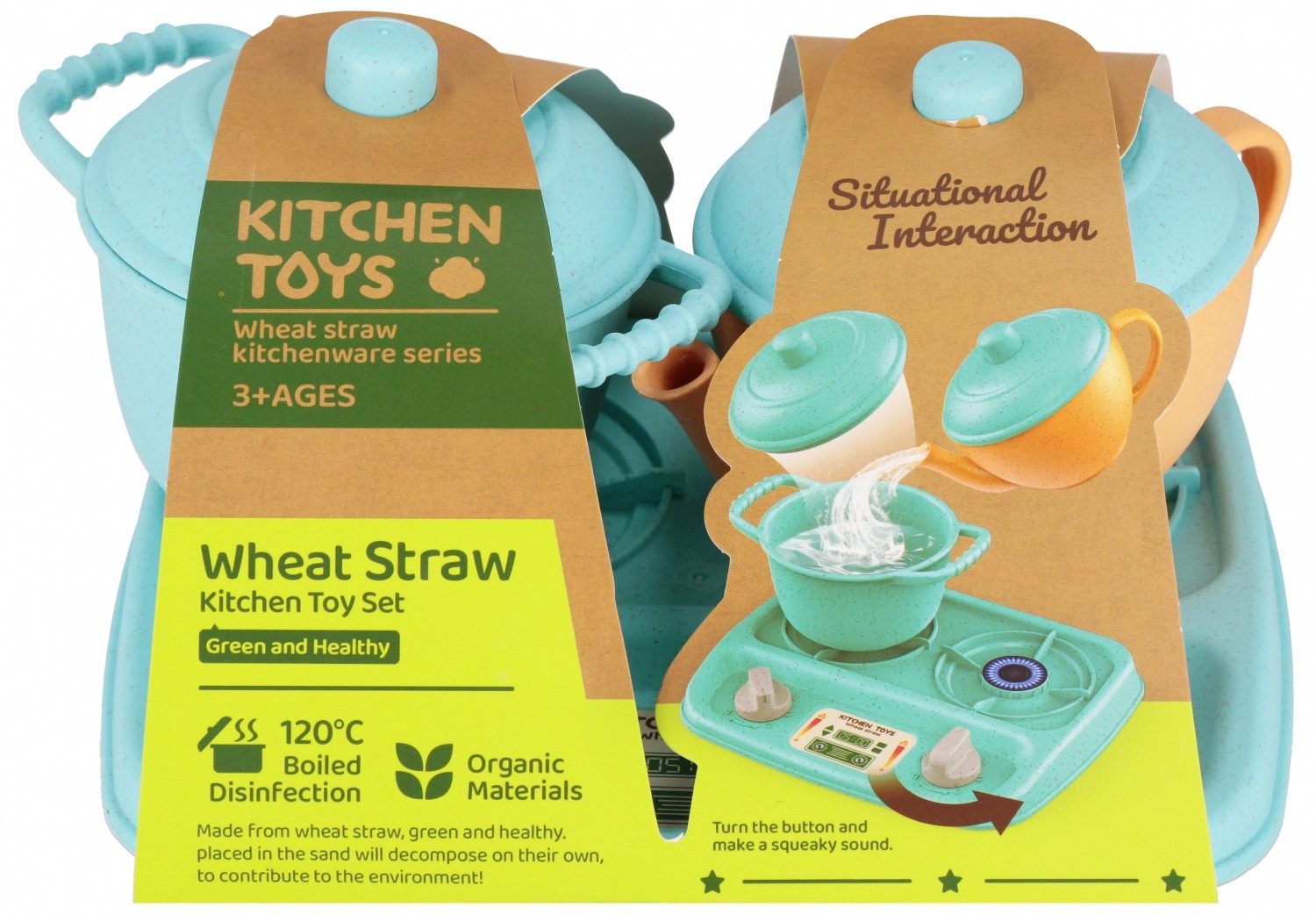 Wszystkie akcesoria wykonane z plastiku i są imitacja prawdziwych. Wymiary/waga/baterie: wymiary opakowania (dł. x wys. x gł.) [cm]: 23x15x19, wymiary produktu: (dł. x wys. x gł.) {cm} - czajnik 16x10x11, -kuchenka 23x3x19, waga produktu bez opakowania [kg]: 0,26kg, waga produktu w opakowaniu [kg]: 0,31 kg, nie wymaga zasilania bateriami.