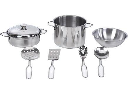 Zestaw metalowych naczyń do zabawy "Mali Kucharze" - Rozbudź kulinarną pasję Twojego dziecka! Przenieś świat prawdziwej kuchni do pokoju Twojego malucha z naszym fantastycznym 8-elementowym zestawem metalowych naczyń do zabawy. Stworzony z myślą o małych entuzjastach gotowania, ten solidny i realistyczny zestaw zapewni godziny kreatywnej i wciągającej zabawy. Każdy element zestawu został starannie wykonany z wysokiej jakości, polerowanej stali nierdzewnej, co gwarantuje trwałość i bezpieczeństwo podczas użytkowania. Dzieci uwielbiają naśladować dorosłych, a te miniaturowe repliki prawdziwych naczyń kuchennych pozwolą im w pełni zanurzyć się w świecie kulinarnych przygód. W skład bogatego zestawu wchodzi: Garnek z idealnie dopasowaną pokrywką: Niezastąpiony do "gotowania" zup, gulaszy i innych pyszności. Pokrywka dodaje realizmu i urozmaica zabawę. Pojemny rondel: doskonały do przygotowywania sosów, smażenia jajek na niby czy duszenia warzyw. Praktyczna miska: przyda się do mieszania składników, przygotowywania sałatek lub serwowania wyimaginowanych dań. Cztery niezbędne przybory kuchenne: Łyżka cedzakowa: Idealna do wyławiania "kluski" czy "warzyw" z "wody". Łopatka z otworami: niezastąpiona do "przewracania" kotletów czy "smażenia" naleśników. Łyżka do makaronu/szumówka: pomocna przy "serwowaniu" spaghetti lub wyjmowaniu większych składników. Chochelka: doskonała do "nalewania" zup i sosów. Zabawa w gotowanie nie tylko dostarcza mnóstwo radości, ale także wspiera rozwój ważnych umiejętności. Dzieci uczą się poprzez naśladowanie, rozwijają swoją wyobraźnię, kreatywność oraz koordynację ruchową. Wspólna zabawa z rodzeństwem lub przyjaciółmi sprzyja budowaniu relacji społecznych i uczy współpracy. Nasz zestaw metalowych naczyń "Mali Kucharze" to doskonały pomysł na prezent dla każdego małego miłośnika kuchni. Solidne wykonanie i dbałość o detale sprawiają, że zabawka posłuży przez długi czas, dostarczając niezliczonych godzin fantastycznej zabawy. Pozwól swojemu dziecku odkryć radość z gotowania w bezpieczny i kreatywny sposób!