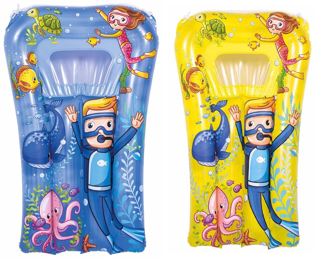 Kto nie lubi leniuchować latem, w wodzie na materacu? Szum wody, ciepłe promienie słoneczne, lekkie kołysanie na wodzie to jest to! Idealny do tego rodzaju relaksu będzie MATERAC PLAŻOWY Z OKIENKIEM PODWODNY ŚWIAT 74X48CM. Ten materac sprawdzi się również jako deska do nauki pływania dla Twojego dziecka. Wesoła kolorystyka, morskie motywy graficzne i specjalne okienko, przez które można podziwiać podwodny świat sprawią, że będzie to ulubiony gadżet na wypady nad wodę lub na basen. Przetestowany mocny winyl jest miły w dotyku i bezpieczny dla skóry.