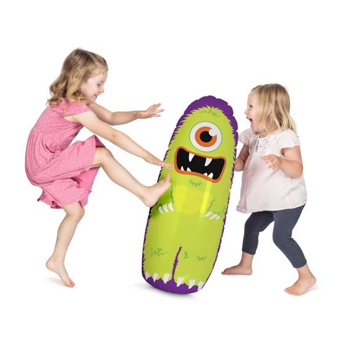 Przyjazny potwór który podniesie się po każdym kopnięci i uderzeniu. Z pewnością poprawi humor gdy tego potrzebujesz. Zabawka w górnej komorze wypełniona jest powietrzem w dolnej zaś wodą dzięki czemu zachowuje się jak „bańka wstańka”. Wysokość 86 cm.