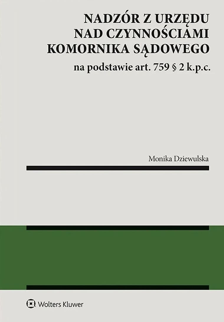 W książce omówiono zagadnienie nadzoru sprawowanego przez sąd na podstawie art. 759 § 2 k.p.c., którym objęte są co do zasady wszystkie czynności komornika. Inicjatywa podjęcia przez sąd działań nadzorczych na podstawie art. 759 § 2 k.p.c. nie jest niczym ograniczona. Sąd podejmuje je za każdym razem, gdy poweźmie informacje o nieprawidłowościach w związku z czynnościami komornika sądowego. Publikacja prezentuje m.in.: różne rodzaje nadzoru w polskim postępowaniu egzekucyjnym, obowiązki sądu w nadzorze nad czynnościami komornika sądowego, czynności podejmowane przez sąd w postępowaniu nadzorczym na podstawie art. 759 § 2 k.p.c., różnice między nadzorem judykacyjnym z urzędu a nadzorem na skutek skargi na czynności komornika, jak nadzór z urzędu nad czynnościami komornika na podstawie art. 759 § 2 k.p.c. różni się od innych form nadzoru w egzekucji z nieruchomości, odpowiedzialność odszkodowawczą w kontekście nadzoru judykacyjnego nad czynnościami komornika sądowego. Cennym uzupełnieniem opracowania jest bogate wykorzystanie orzecznictwa i doktryny. Książka przeznaczona jest przede wszystkim dla praktyków: komorników sądowych, asesorów sądowych, sędziów, adwokatów i radców prawnych, którzy w codziennej pracy mierzą się z konsekwencjami stosowania art. 759 § 2 k.p.c. Zainteresuje również osoby przygotowujące się do egzaminów zawodowych lub prowadzące działalność naukową w zakresie postępowania cywilnego.