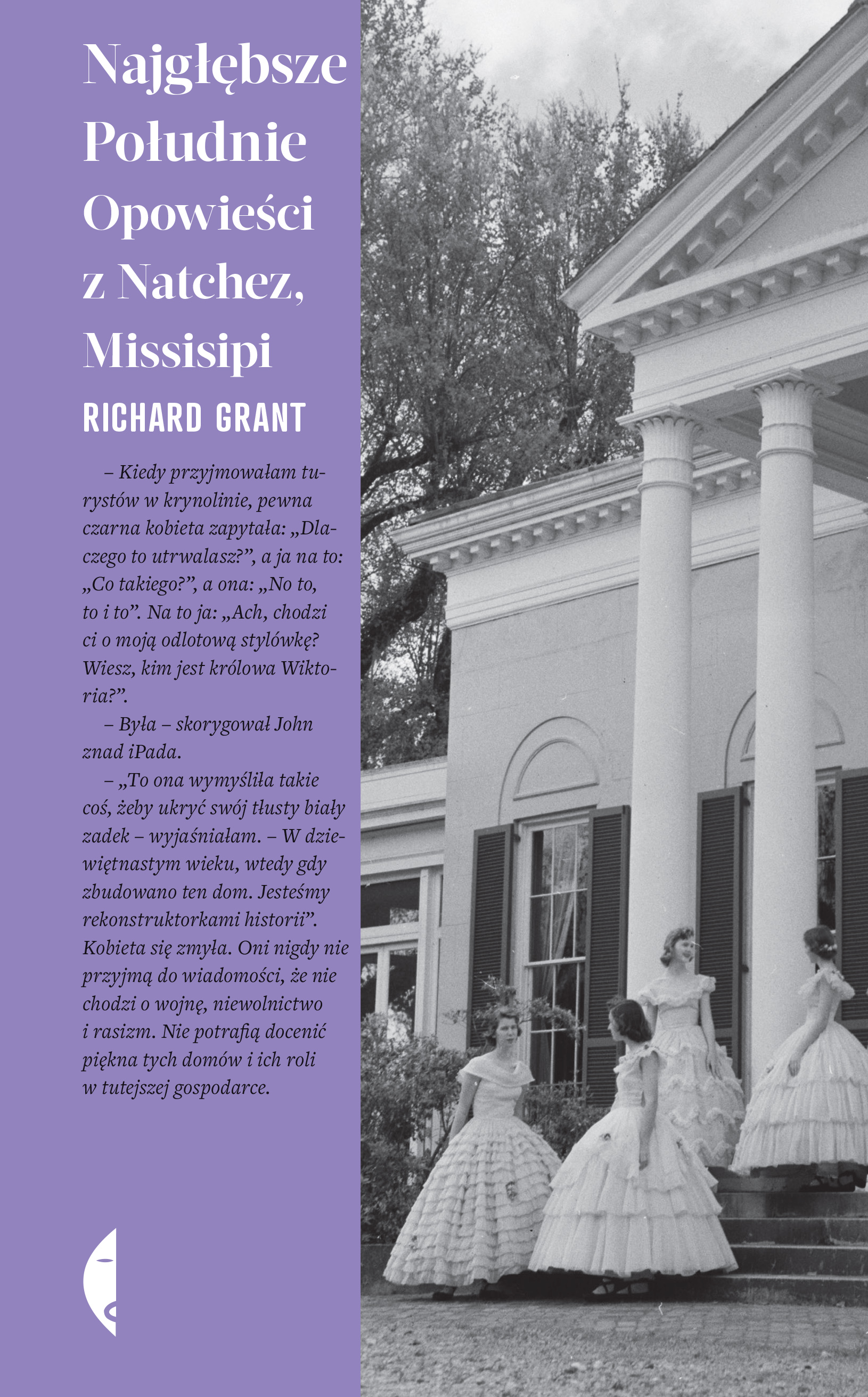 W Natchez, niewielkim mieście nad rzeką Missisipi, czas jakby się zatrzymał. We wspaniałych rezydencjach wzniesionych przed wojną secesyjną matrony w krynolinach opowiadają gościom o historii tego miejsca, a potem oprowadzają ich po imponujących posiadłościach. Uważny słuchacz będzie jednak zdezorientowany - a co z niewolnikami? Dlaczego prawie zniknęli z tych opowieści? Czy to nie tu mieścił się drugi co do wielkości na Południu targ, na którym kupowano i sprzedawano ludzi? Nie chodzi o wojnę, rasizm, niewolnictwo - odpowiedzą mu - chodzi o piękno naszych domów, celebrowanie naszej spuścizny! Dumni ze swojej ekscentryczności, mieszkańcy miasta pielęgnują stare rytuały - coroczne przedstawienia w dość wybiórczy sposób prezentujące przeszłość miasta, świąteczną paradę, w czasie której pijani kierowcy pod ochroną policji rozdają podarki dzieciom z ubogich rodzin...