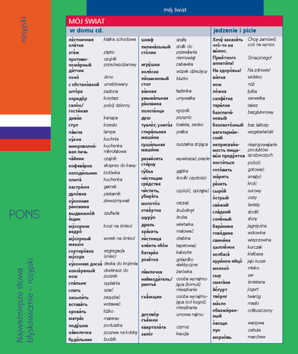 Praktyczna ""ściągawka"" do nauki i powtórek słownictwa rosyjskiego. Dwunastostronicowa, kolorowa składanka poręcznego formatu B5, którą możesz wpiąć do segregatora, zawiera podstawowe słownictwo rosyjskie, uporządkowane tematycznie.