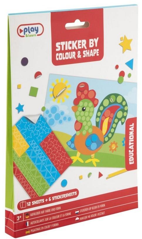 Wypełnianie obrazków po kolorach i kształtach za pomocą naklejek. W zestawie: 12 arkuszy i 6 arkuszy naklejek, wzór: Kogucik. Odpowiednie dla dzieci powyżej 3 lat.