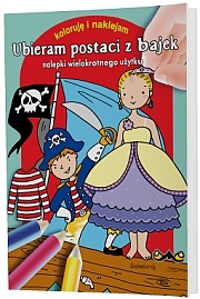 Świetna zabawa dla każdego dziecka! Ubieraj postaci, przyklejając nalepki wielokrotnego użytku z ubraniami, czapkami, fryzurami, akcesoriami... Możesz ubierać lalki, wzorując się na kolorowankach albo kierując się własną fantazją. Pokoloruj też obrazki, używając dowolnych kolorów kredek.