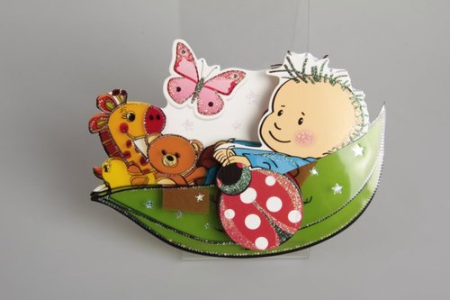 Komplet naklejek dekoracyjnych składających się z 6 wzorów z motywem dziecięcym. Każdy na arkuszu o wymiarach 15x19cm. Naklejki wykonane z papieru ozdobnego pokrytego brokatem, do którego przyklejone są elementy z pvc - daje to efekt trójwymiarowości.