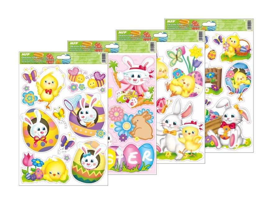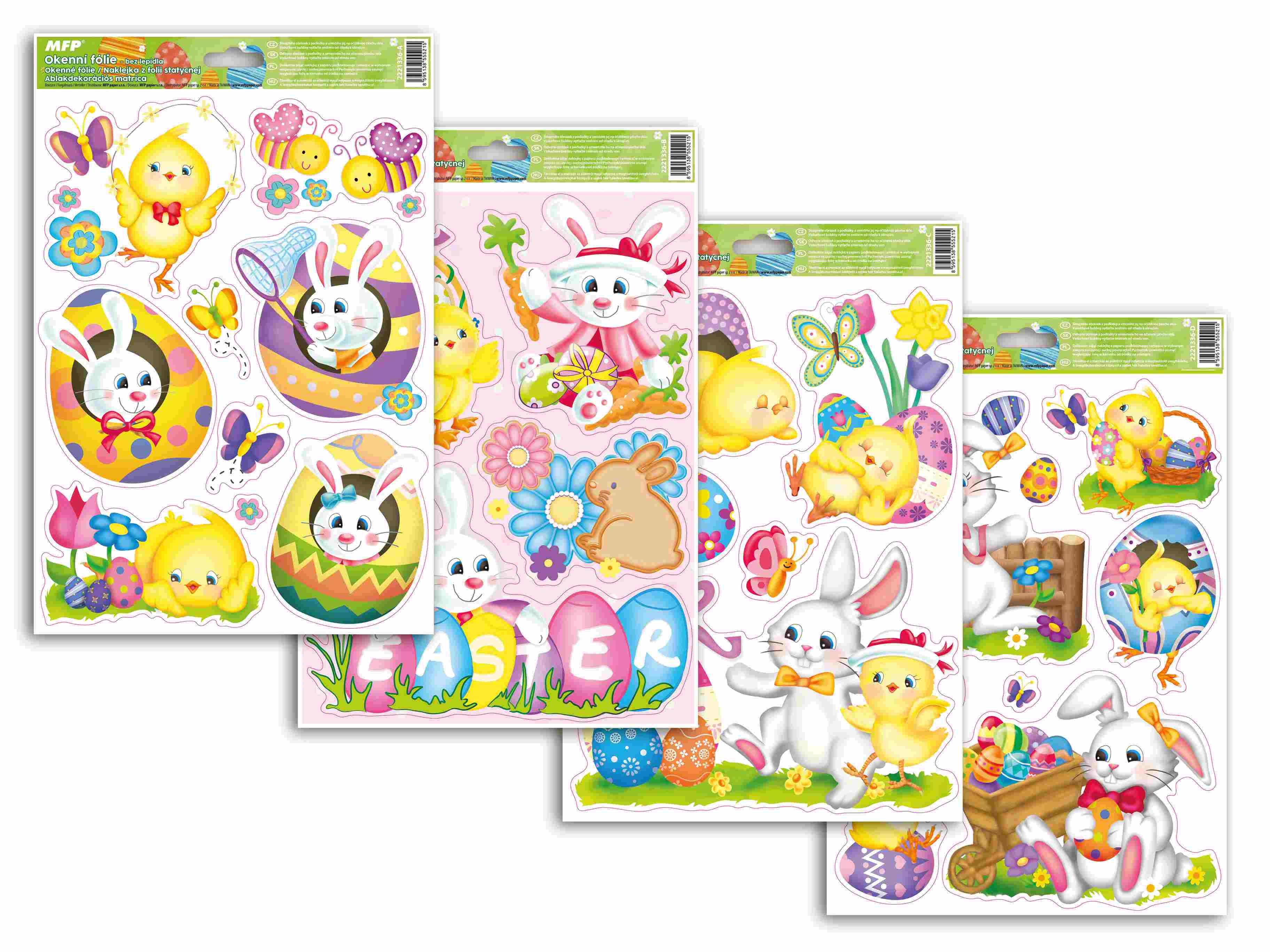 Opakowanie Naklejka na okno brokat Wielkanoc 30x42cm MIX