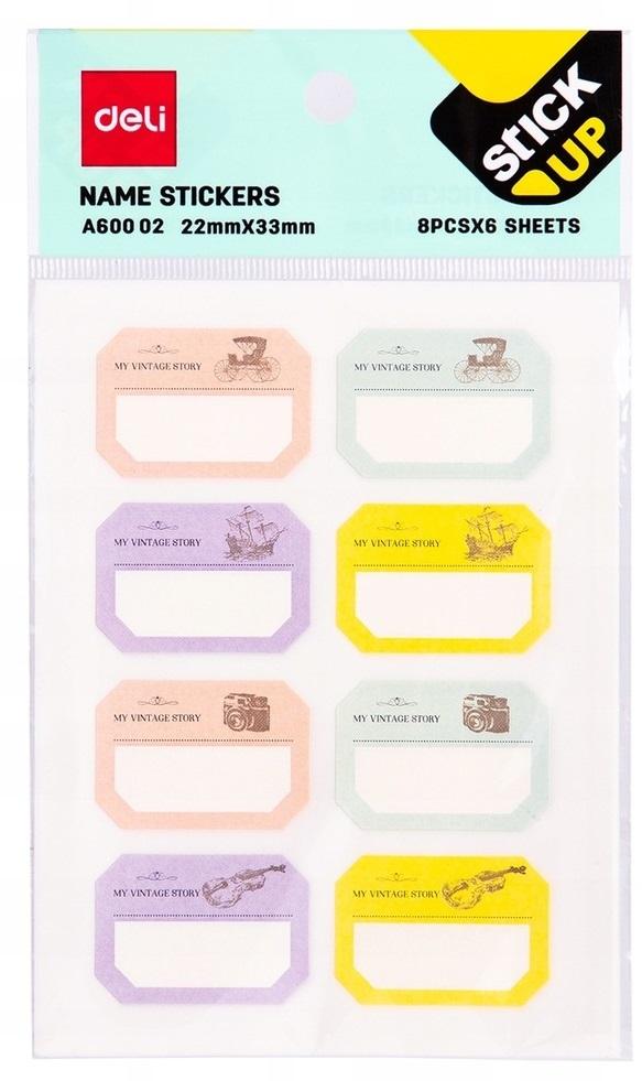 Opakowanie Naklejka opisowa 8szt x 6 kartek DELI