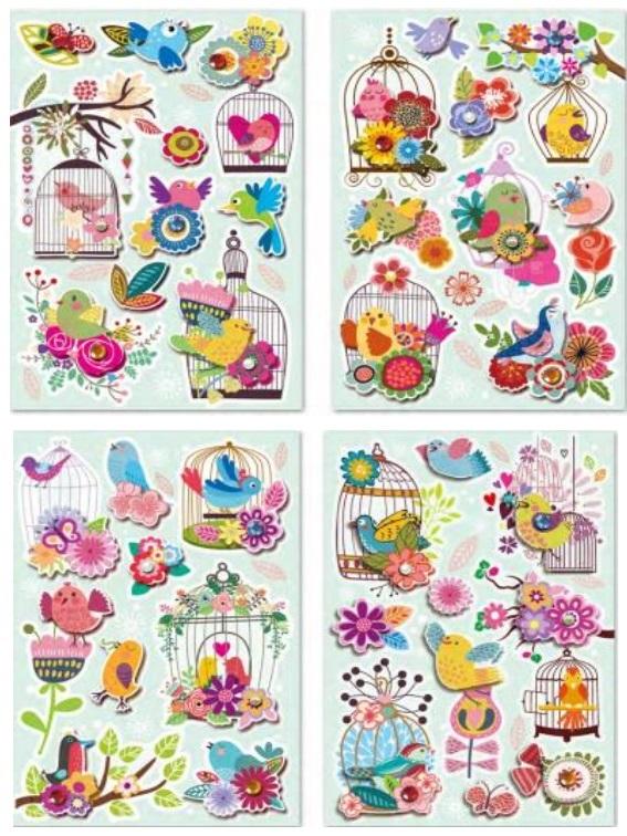Naklejki 3D kwiatki i ptaszki. Miks 4 wzorów wysyłany losowo.