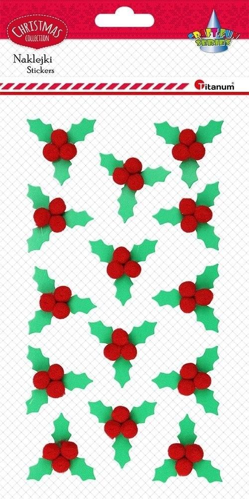 Naklejki 3D liście ostrokrzewu z owocami z pomponów 33x33mm 14szt.