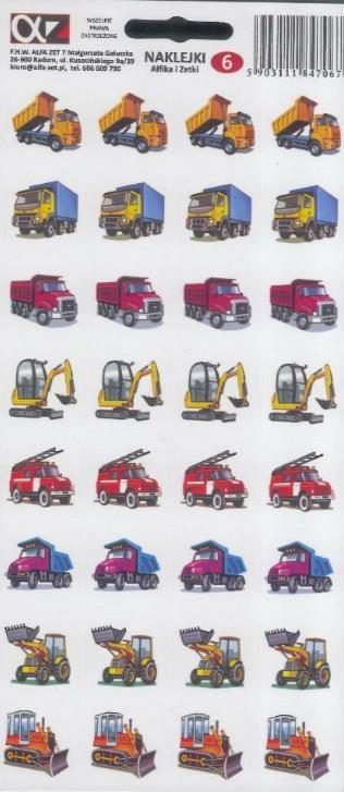 Opakowanie Naklejki Alfika i Zetki 6 Samochody budowlane